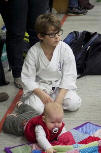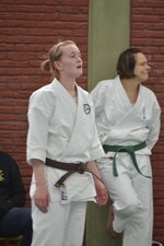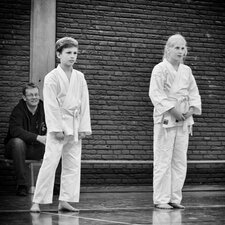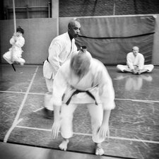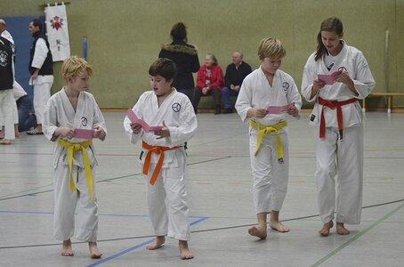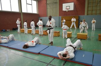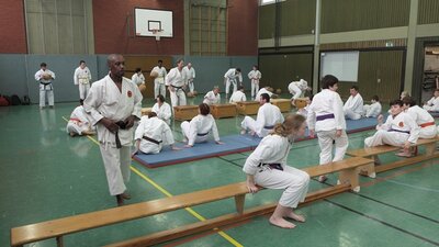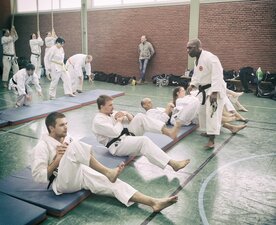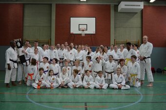Die Sporthalle der JAS war brechend voll. Könnte etwas eng werden, dachte sich Karatetrainer Jörg Fichna vom BSV Ostbevern, als er durchzählte. 48 Karateka, 4 Trainer und sogar einige Zuschauer waren aus verschiedensten Bereichen Westfalens angereist um am sog. Tomo-Training (Tomo, jap. = Gemeinschaft) teilzunehmen. Diesmal war die Karateabteilung Yamauchi Yodo vom BSV der Gastgeber, und es begann gleich mit einem dynamischen Fitnesstraining der besonderen Art. Nach wenigen Minuten war allen Teilnehmern klar, dass es kein Spaziergang werden würde. Clyde White, Sensei 3. Dan, aus Bad Oeyenhausen schliff die Gemeinschaft 45 Minuten lang durch die Halle, und die meisten sehnten sich danach schon nach einer ausgedehnten Pause, aber jetzt fing es erst richtig an. In drei Gruppen aufgeteilt unterrichteten die Sensei Jean-Claude C. (Herford), Michael Surkau (Greven) und Jörg Fichna grundlegende bis spezielle Kampftechniken und Kumiteformen. Erst nach einer weiteren Stunde gab es endlich die ersehnte Pause. Ein Kuchenbuffet sollte alle Kareka für die abschließende Phase des Tomotrainings stärken - Kata. Wieder in drei Gruppen zerlegt, wurden die Trainingsinhalte detailliert und ausgiebig geübt. Alle Teilnehmer und Trainer waren fokussiert und als Zuschauer konnte man die locker entspannte Armosphäre spüren, die sich durch die gemeinsamen Stunden zog. Für das Trainergespann und auch für den ehemaligen Loburger und leitenden Sensei Frank Stuckemeyer (5. Dan, Gütersloh) bestätigte sich erneut die tragende Grundidee des Tomotrainings: Stärkung der Gemeinschaft umliegender Karatedojos des S.K.I.D.-Verbandes, Vernetzung der Karateka und Austausch von Wissen. Jahrelang wurde dies nicht ernsthaft versucht, doch nun sehen sich alle Dojoleiter auf einem guten Weg. "Das Interesse der Karateka ist stark gewachsen," so Jörg Fichna. "Wir alle kennen uns teilweise seit Jahren und Jahrzehnten von gemeinsamen Lehrgangsbesuchen des S.K.I.D. auf regionaler und Bundesebene. Irgendwann wurde uns Trainern klar, dass wir die Begeisterung für Karate auf regionaler Ebene noch besser fördern können, wenn wir uns regelmäßig zum Gemeinschaftstraining treffen. Es ist ein erhebendes Gefühl für uns Dojoleiter zu sehen, wie diese Idee sich durchgesetzt hat. Man kann fast schon von einer "Tomo"-Marke sprechen, und genau das werden wir weiter voranbringen."